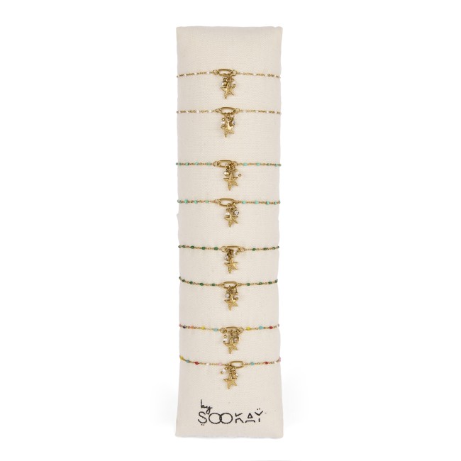 Coussin de 8 bracelets en acier inoxydable – Chaînes émaillées, perles de cristal & céramique thème étoile de merBracelets Acier Inoxydable