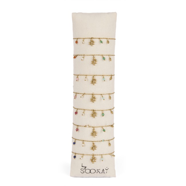 Coussin de 8 bracelets en acier inoxydable – Chaînes émaillées, perles de cristal & céramique thème arbreBracelets Acier Inoxydable